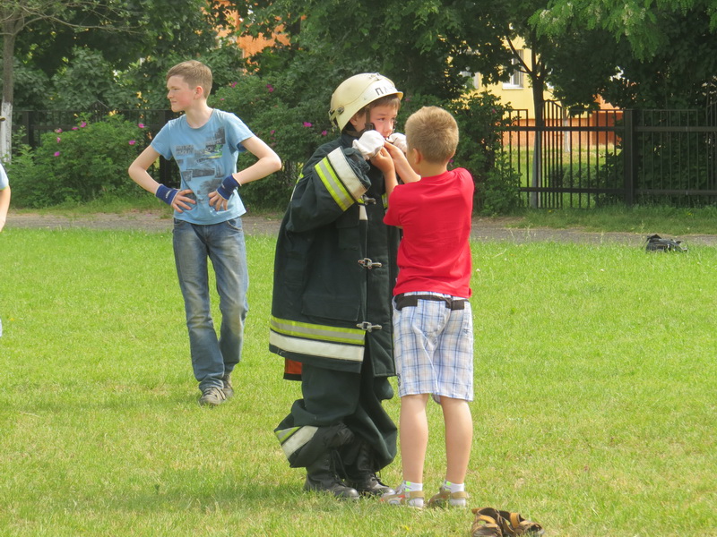 На гэты раз ратавальнікі наведалі прышкольны аздараўленчы лагер ДУА «Гімназія №2 г. Салігорска», дзе з дзецьмі правялі пажарна-спартыўную эстафету. Дзеці спаборнічалі ў розных конкурсах: «Пажарныя вучэнні», «Мы вадой затушым полымя», «Апрані пажарнага», «Перанос пацярпелага», «Выклік пажарнай службы «101».