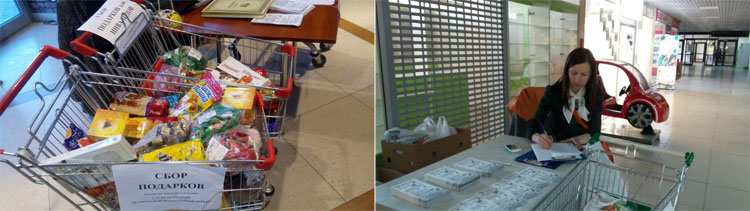 - - Помочь с транспортом (сгружать собранные подарки из магазина и отвозить на склад);