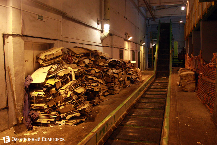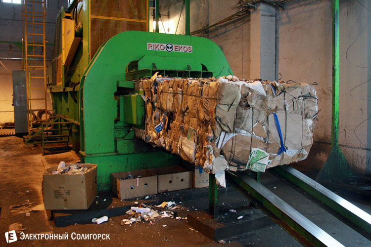 Непригодные для повторного использования отходы затем вывозится на полигон ТБО д.Дубеи. Отобранное сырье при помощи погрузчика доставляется на гидравлический пресс, где прессуется и упаковывается в тюки, которые уже отправляются заводам-переработчикам.