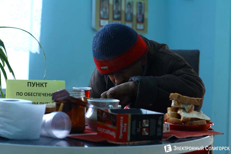 Сильные морозы - явление такое, когда начинаешь заботиться не только о своем комфорте и утеплении, но и думать о том, кому из Божьих созданий в таких условиях требуются помощь в спасении по сути жизни. Активная позиция в этом вопросе и у солигорских социальных служб. Наш сайт уже сообщал о том, что с наступлением сильных морозов на базе ГУ «Солигорский районный территориальный центр социального обслуживания населения» открылся пункт обеспечения питанием и горячим питьем лиц, остро нуждающихся в этом, или попросту говоря, людей без определенного места жительства. Корреспонденты "Электронного Солигорска" посетили этот пункт, понаблюдав за нехитрым процессом обслуживания посетителей с драматическим социальным статусом.