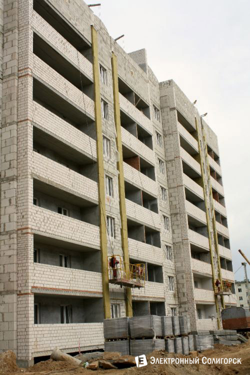 Кирпично-блочный дом – двухуровневый. Первый подъезд – 8 этажей, второй – 7. В доме – 30 двухкомнатных квартир, трёх- и однокомнатных – по 15.