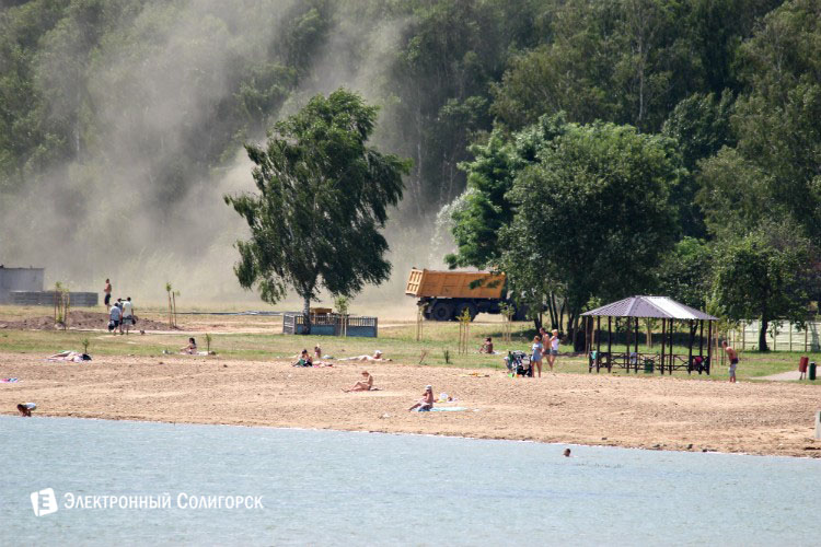 Как мы и обещали, корреспонденты "Электронного Солигорска" продолжают следить за тем, как продвигается благоустройство детского пляжа. Сегодня излюбленное солигорчанами место отдыха у воды напоминает настоящую стройплощадку: отдыхающие делят пляж со строителями, и на первый взгляд даже трудно определить, кого из них здесь больше.