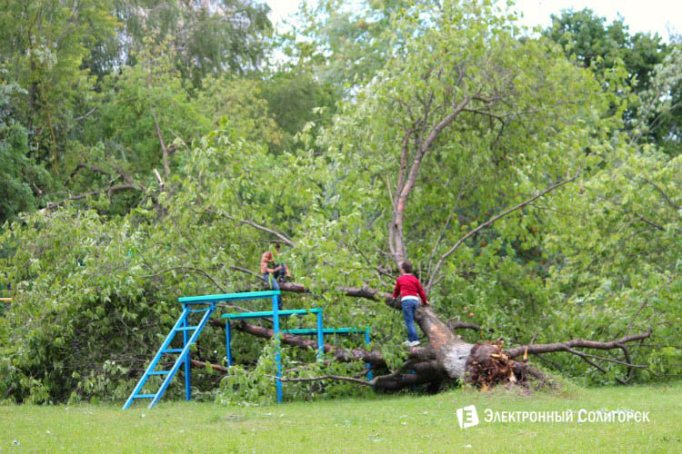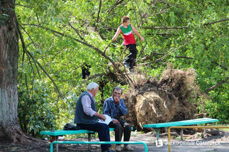 Одно из мест массового падежа больших деревьев - сквер возле Стройтреста №3, а также расположенный поблизости стадион гимназии №1. Значительная часть сквера завалена упавшими деревьями, некоторые из которых повредили скамейки, ограждения, вырвали корнями тротуарную плитку. Прохожим приходится корректировать свой маршрут, переступая или обходя лежащие на дорожках стволы и кроны упавших больших деревьев. Аварийными службами с помощью бензопил ведется ликвидация последствия стихии и расчистка улиц. Детишки облюбовали для игр стволы упавших деревьев, не упускают горожане запечатлеть на фото необычную для повседневности картину.