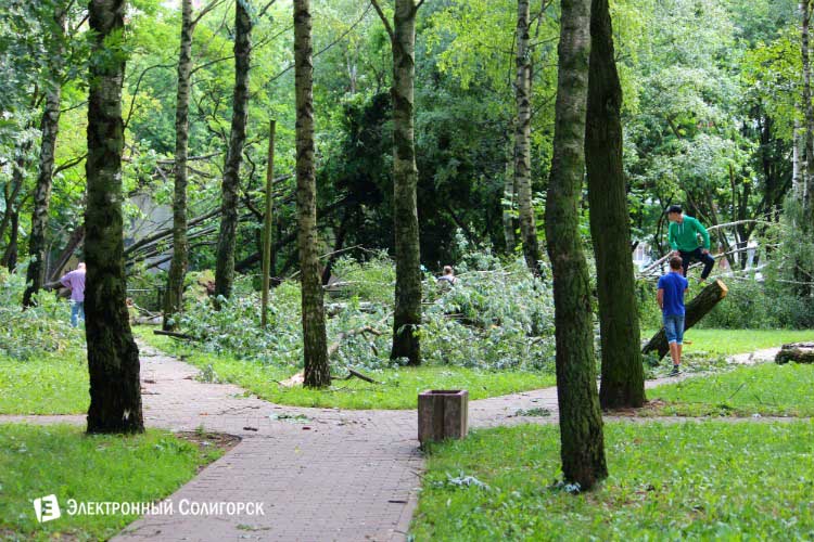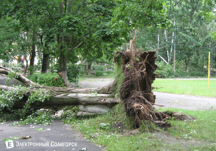 Пронесшийся 12 июля над Солигорском ураган оставил на улицах города свои деструктивные следы. И если сегодня вода с затопленных участках постепенно уходит, то вот несколько десятков вырванных силой ветра деревьев, лежащих на улицах, являют одну из главных тем для пересудов горожан.