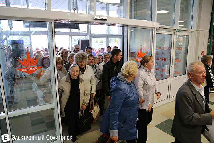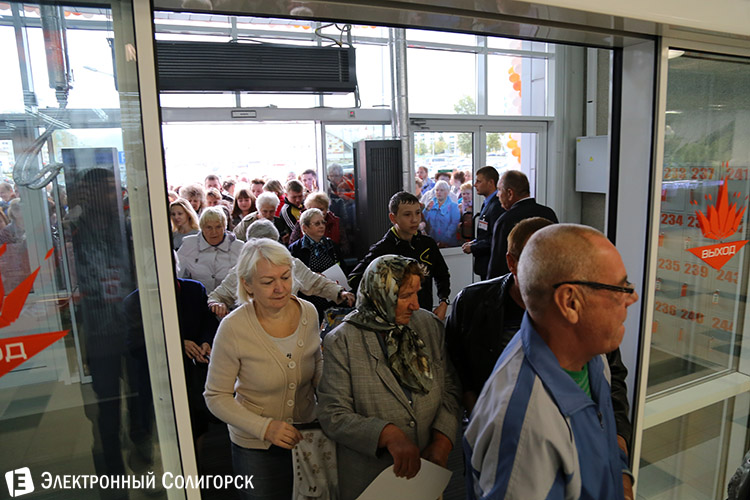 Ближе к 10 часам у каждой из входных дверей торгового центра наблюдалось внушительное количество людей.