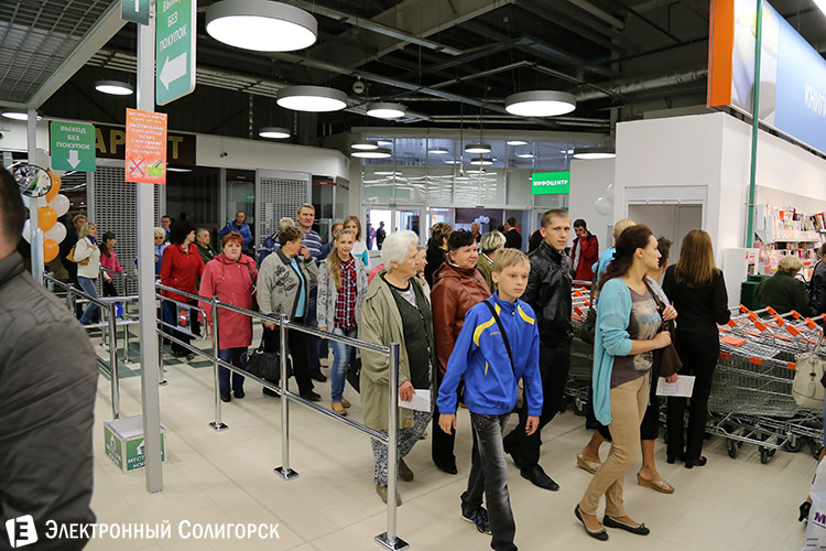 28 августа в Солигорске открылся торговый центр "Корона". Несмотря на осознанное отсутствие рекламы по этому поводу и иного пафоса в виде торжественных мероприятий с перерезанием красной ленточки, сарафанное "радио" в городе сработало отменно, и количество людей, ожидающих у входа шанса быть первыми посетителями нового торгового центра, было весьма значительным. За первыми часами работы солигорской "Короны" понаблюдали и корреспонденты "Электронного Солигорска".
