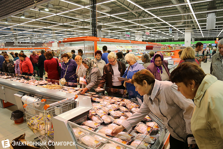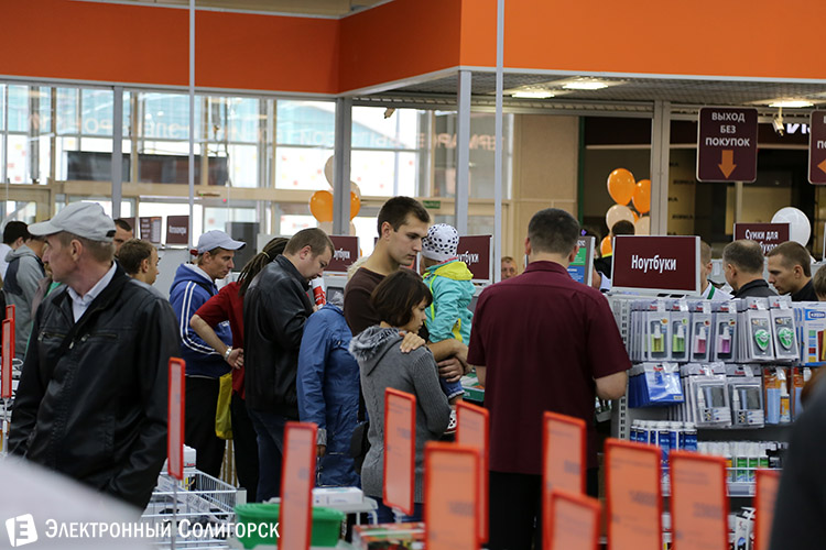 И вот он долгожданный момент! "Корона" открыта, доступ в огромное оранжево-белое здание получен. Людской поток мгновенно хлынул в торговый зал, принявшись с неутомимым любопытством изучать просторы нового крупного магазина.