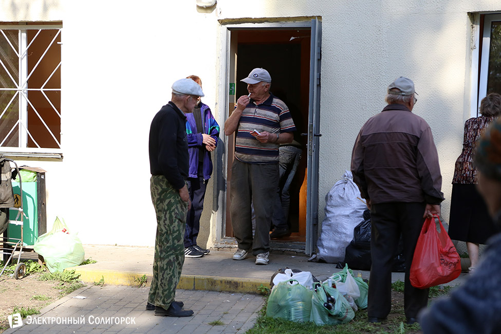 Наблюдается значительное оживление и на крыльце, окрестности здания постепенно превращаются в свой отдельный мирок, где все уже друг друга знают, обсуждают новости и спорят о порядке очередности к заветным весам.