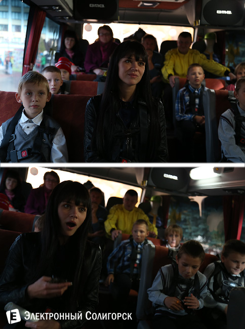 Автобус укомплектован генератором дыма для имитации задымления салона, наглядными материалами и мультимедийной аппаратурой для демонстрации обучающих фильмов. На выходе всем детям вручали фликеры и памятки о том, насколько важен ремень безопасности.