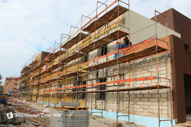 В начале нынешнего года мы рассказали на нашем портале о промежуточном этапе строительства. Возведением здания занимались специалисты фирмы-заказчика «ЭкоСтройИнвест». Летом нынешнего года в связи с неустойчивым финансированием ход строительных работ был несколько замедлен, однако сегодня на стройплощадке снова заметное оживление: ведутся работы по наружной отделке здания. На субподряде у застройщика – отделочники СУ-137 стройтреста №3.