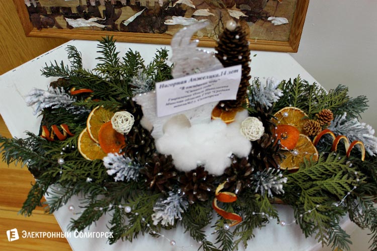 Работы представлены в пяти номинациях: «Праздничная ель», «Флористическая игрушка», коллаж «Символ года», «Новогодняя тантамареска» и коллаж «Послание зимы» в технике Ошибана. Две последние номинации в нынешнем году стали новинками конкурса.