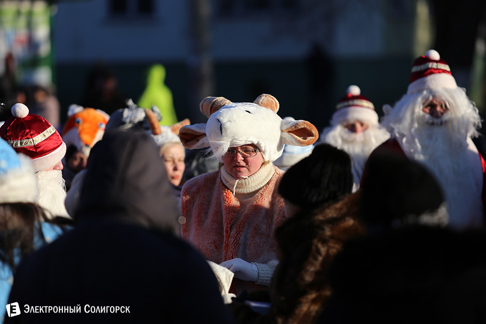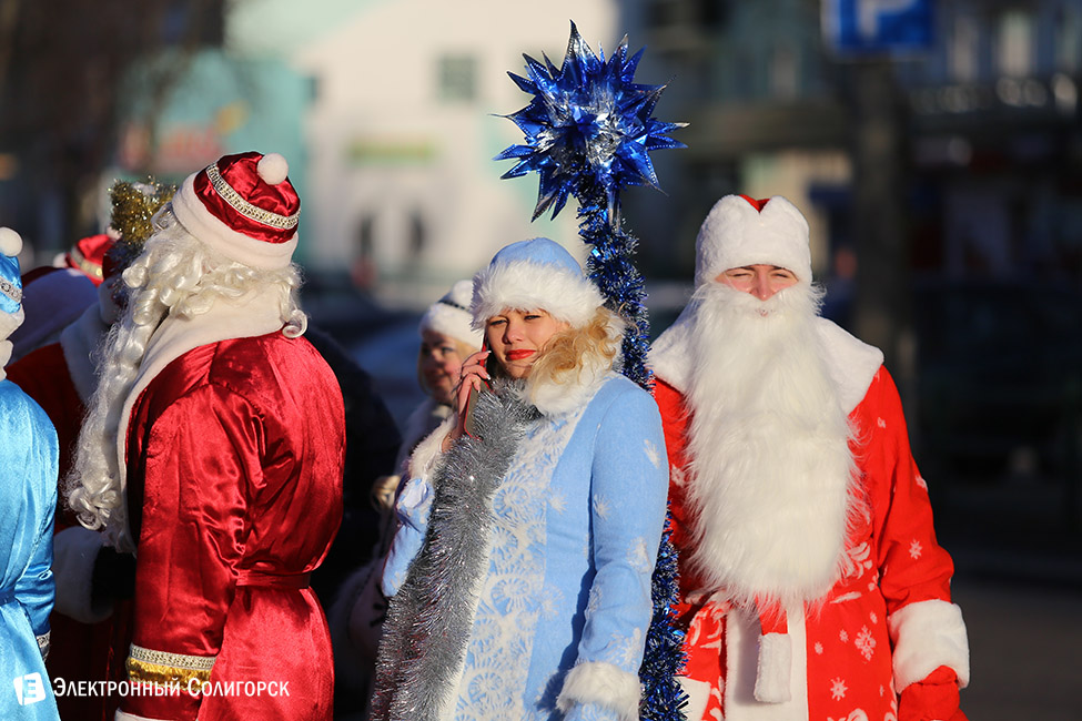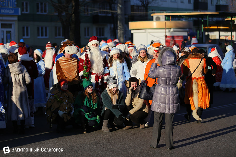 Организаторы шествия анонсировали, что нынешний парад Дедов Морозов станет самым масштабным среди аналогичных солигорских мероприятий. В честь 90-летия Солигоркого района в параде было запланировано участие 90 пар новогодних героев. Так ли было на самом деле - сосчитать не удалось. Но это и не главное, ведь Дедов Морозов, Снегурочек, героев сказок, мультфильмов, добрых персонажей и симпатичных представителей нечистой силы собралось действительно очень много.