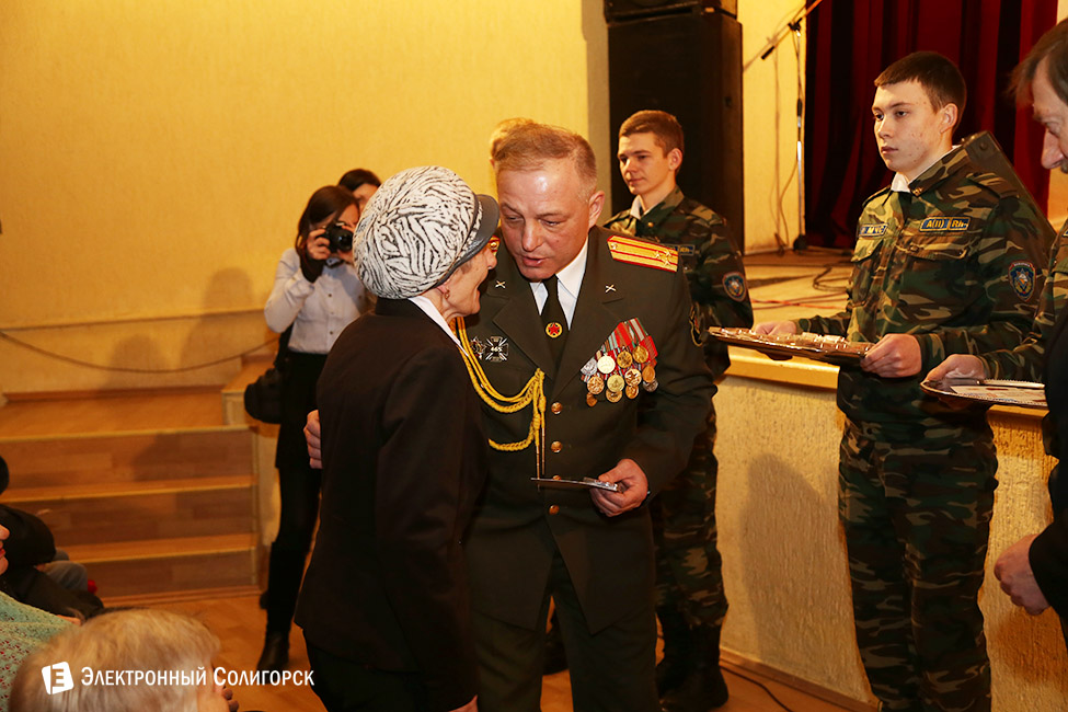 Юбилейные медали ветеранам Солигорского района вручили Валерий Заинчковский, член Совета Республики Национального Собрания Республики Беларусь Владимир Павлюкевич, председатель Солигорского районного Совета депутатов Лидия Клишевич, исполняющий обязанности председателя Солигорского районного исполнительного комитета Игорь Делендик. Юбилейной медалью "70 лет Победы в Великой Отечественной войне 1941-1945 г.г." были награждены 50 человек.