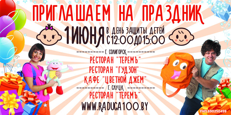 1 июня в День защиты детей в ресторанах «Теремъ», «Гудзон» и кафе «Цветной джем» будет настоящее детское пиршество. На празднике Вас ждут ростовые куклы, задорные аниматоры, которые создадут хорошее настроение и увлекут детей интересными играми и конкурсами.