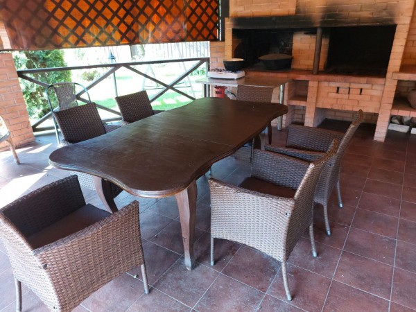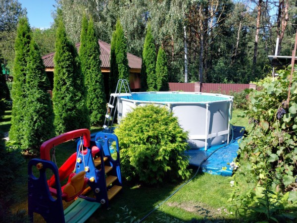 Во дворе большая беседка с печным комплексом, мангал, лежаки, детская площадка, бассейн.