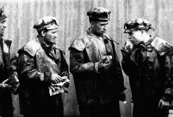 На глубине 414 метров ствола № 2 вскрыт промышленный горизонт солей. На гора поднята первая бадья с калийной солью. Её добыли шахтопроходчики звена Николая Герасимени.
