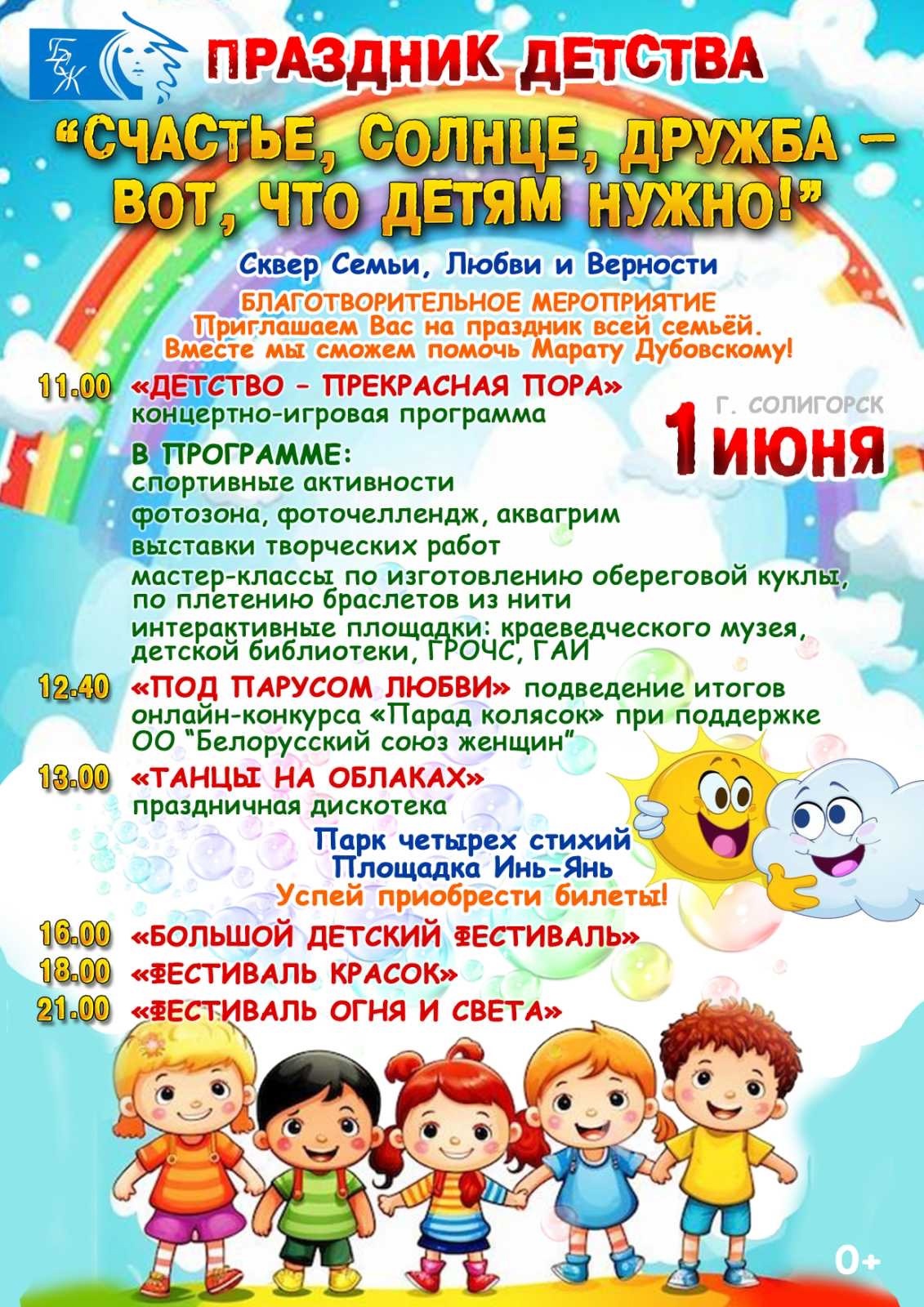 1 июня в Солигорске пройдут различные яркие мероприятия для детей всех возрастов. Мы собрали интересные варианты, где можно весело и с пользой провести праздник.