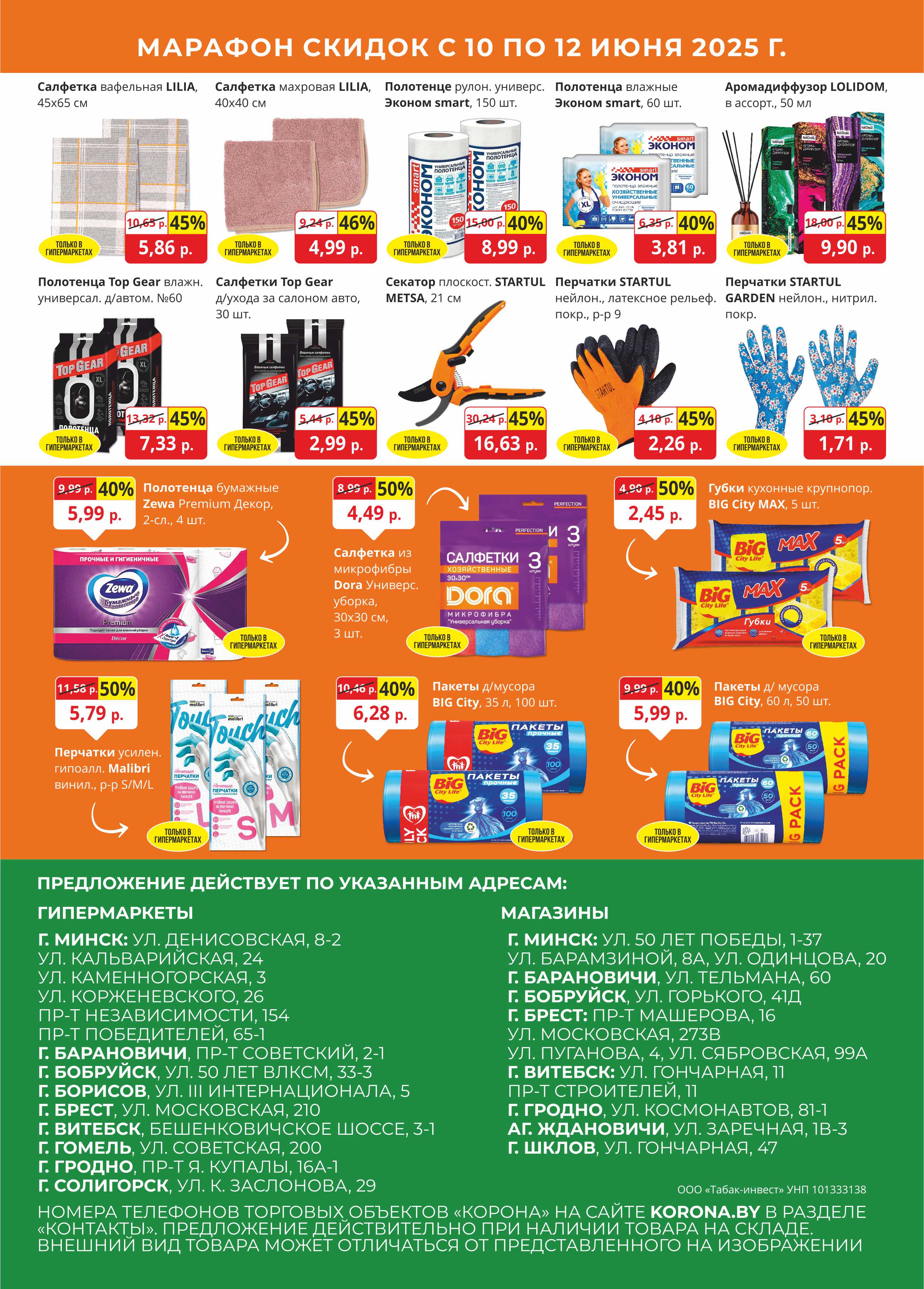 Успейте приобрести продукты к столу, косметику для волос и тела, посуду, товары для дома и сада, бытовую химию и многое другое по приятным ценам!