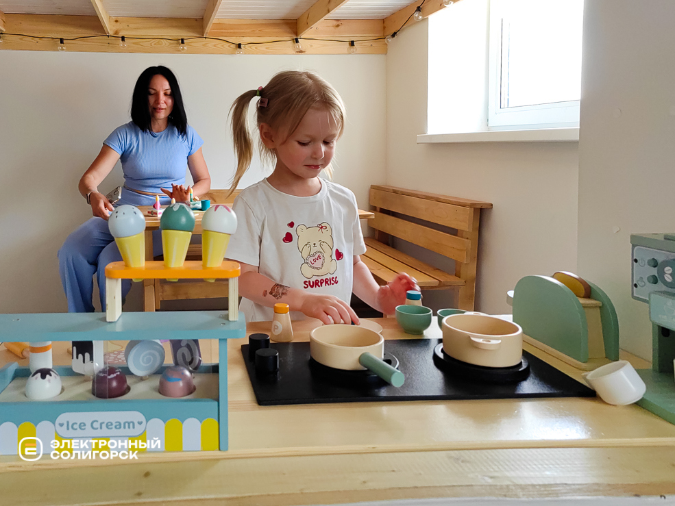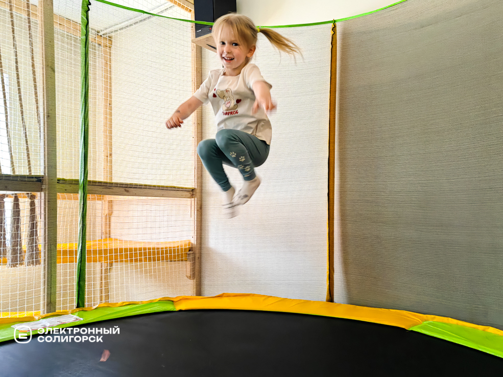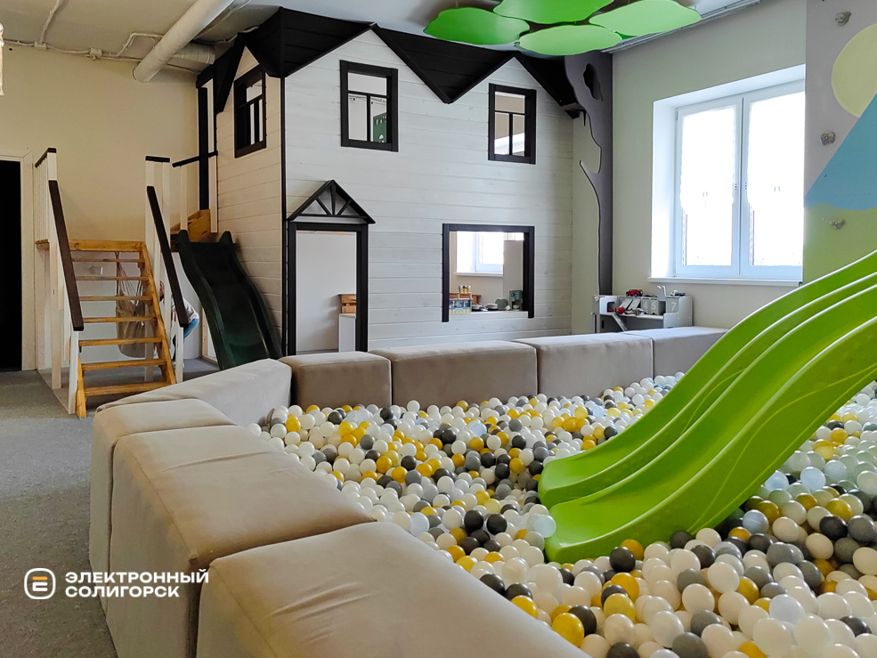 Большая игровая зона. Здесь может одновременно собраться до 18 человек (включая сопровождающих). Есть сухой бассейн, горка, батут, гамак, двухэтажный домик, лабиринт, скалодром. Занятие найдётся как для самых маленьких, так и для больших ребят.