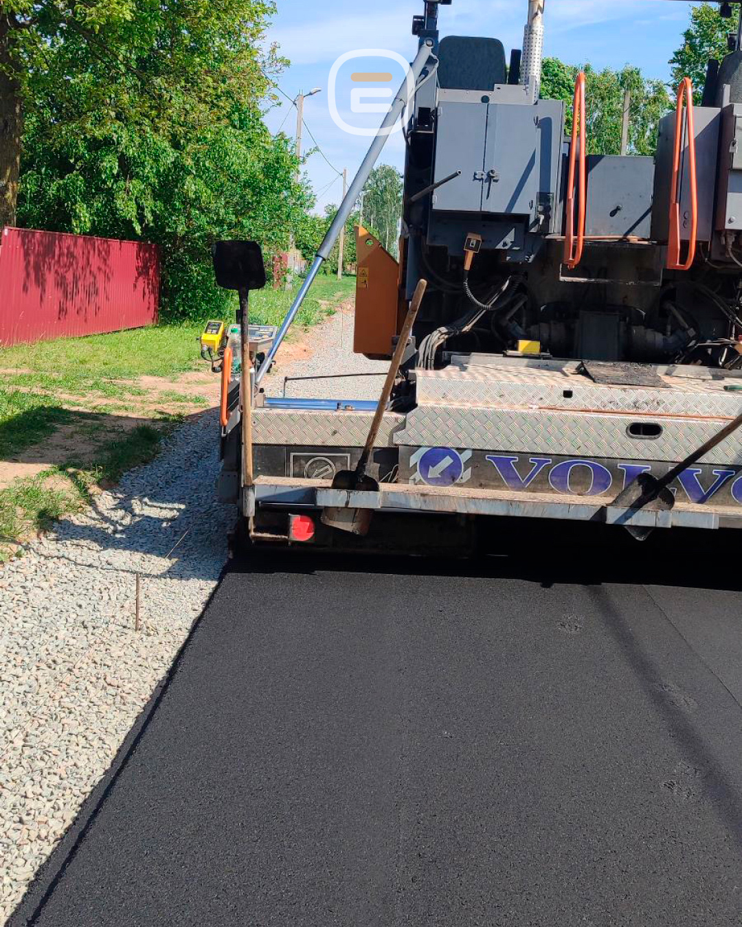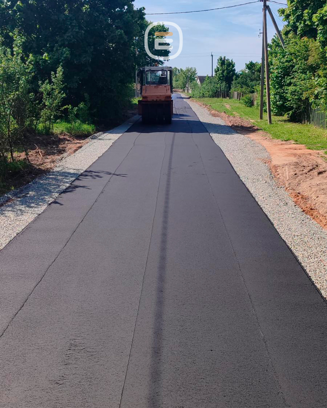 На ул. Пролетарская в д. Кривичи идет укладка нового асфальта.
