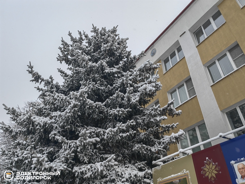 В Солигорск после нескольких теплых дней резко похолодало и выпал снег. Город преобразился: дети с восторгом играют в снежки, а коммунальные службы экстренно занимаются расчисткой дорог и тротуаров.