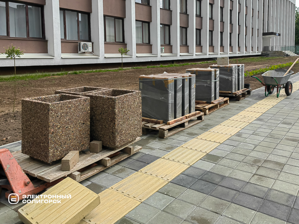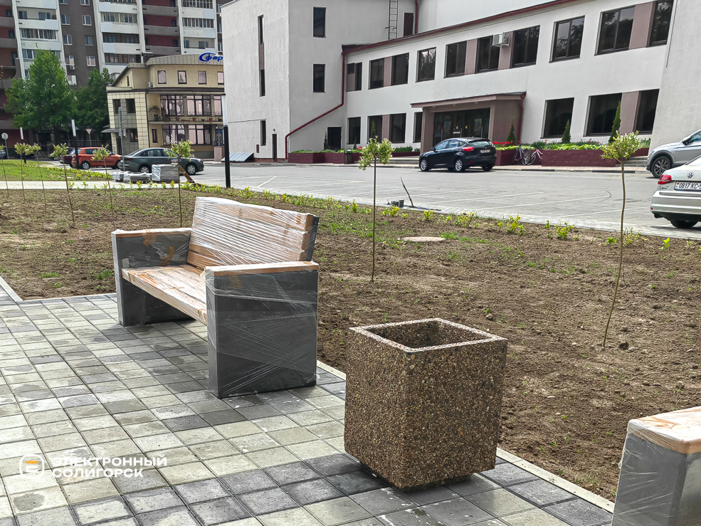 Уже сейчас можно заметить качественные пешеходные дорожки, вымощенные плиткой. Создана безбарьерная среда – для незрячих и слабовидящих солигорчан установлена тактильная плитка. Появляются и стильные каменные урны, дополняющие ансамбль со скамейками. Высажены молодые деревья и декоративные кустарники.