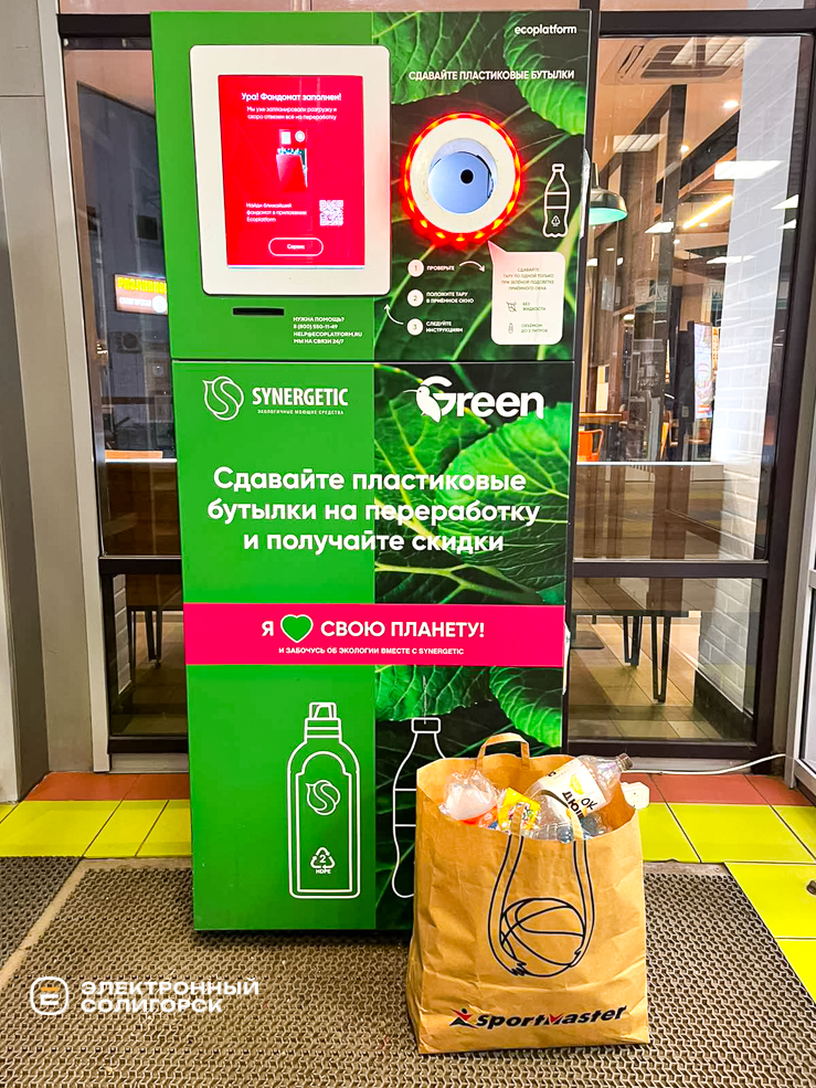Отправляясь в продуктовый магазин, очень сложно вернуться без пластиковой тары: молочные продукты, минералка, газированные напитки… Это и многое другое очень часто продают в пластмассовых бутылках, которые, кажется, дома начинают размножаться почкованием. Кто-то собирает отдельно и выносит в контейнер для пластика, но солигорчанка решила пойти другим путём и сдать в фандомат, расположенный в крупном гипермаркете.
