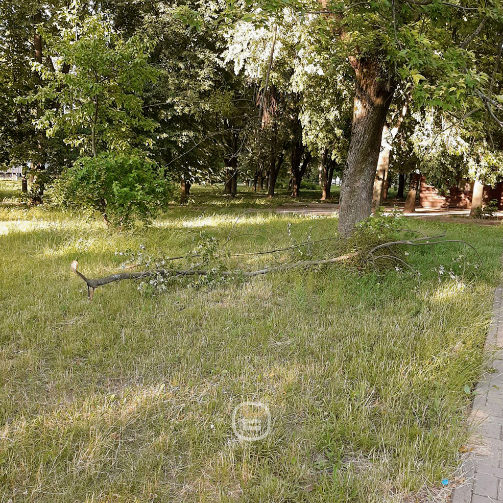 Ветренная погода слегка подкорректировала внешний вид зеленых насаждений в Солигорске.
