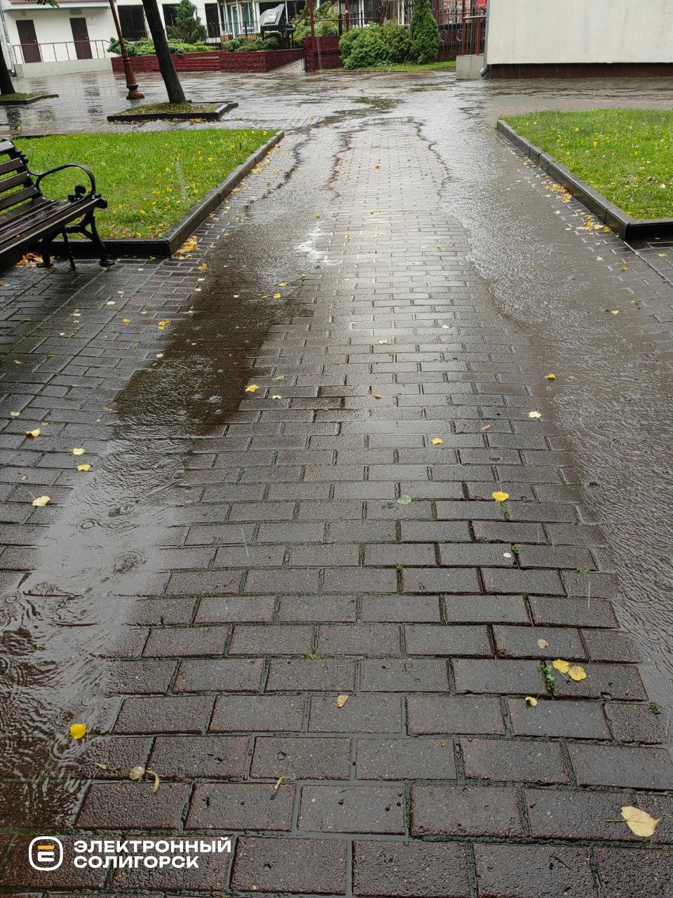 На ул. Л. Комсомола уровень воды на дороге поднялся выше бордюра.
