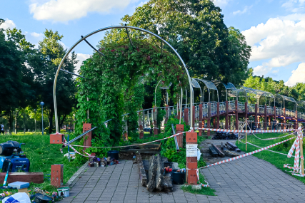 В парке “Четырёх стихий” ремонтируют мост, который стал настоящей достопримечательностью Солигорска: здесь влюблённые скрепляли свои чувства символичными замочками, гости фотографировались в арках, дети с удовольствием играли.