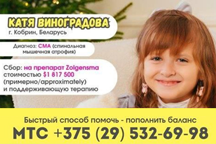 Осталось 25 %: помогите маленькой Кате Виноградовой собрать оставшуюся сумму на лечение от СМА