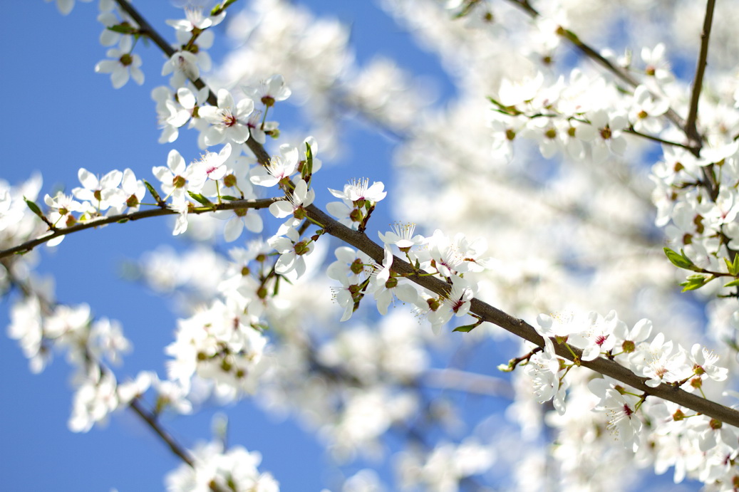 Синева неба шикарно сочитается вместе с белизной цветов. ;)
